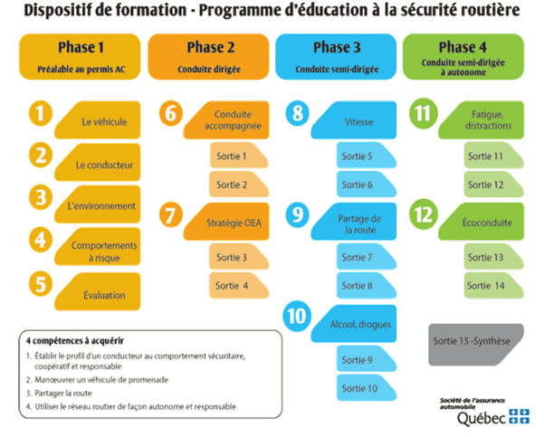 Programme d'éducation à la sécurité routière. Il a été élaboré selon l'approche des programmes par compétences et il repose sur les quatre compétences suivantes :